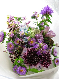 (写真は発表会へ、のブーケ。スカビオサ、あじさい、シキンカラマツ、