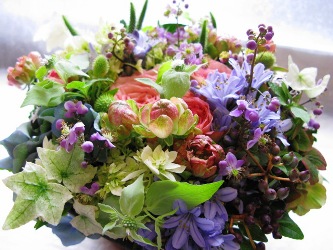 (写真は”いつもありがとう”アレンジ。バラ「オリエンタルキュリオーサ」・