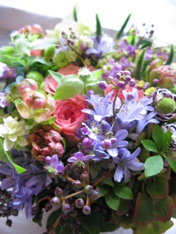 (写真↑はお祝いブーケ。トリカブト、セルリア、トルコギキョウ、