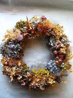 (↑の写真はそのドライフラワーのリース。