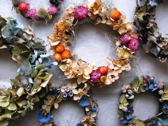 きょうから”夏のリース展”がこっそりはじまっています。ドライフラワーの