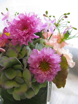 (写真はお祝いのアレンジ。ダリア「ムーンワルツ」・「キューティ」、