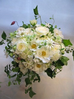 思い出のかご、いやブーケです。”ウェディングドレス”っていうバラは
