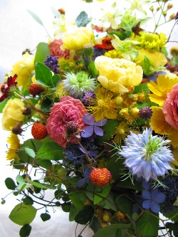 ジニア、ライステリア、木苺、染め雪柳、ケイトウ、野バラ など。)
