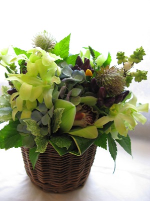 (↑の写真は敬老の日アレンジ。シンビジウム、デンファレ、オヤマボクチ、