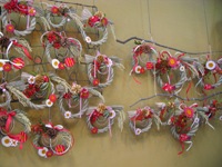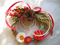 手づくりのお正月飾りが並びました。紅白でめでたい感じです!