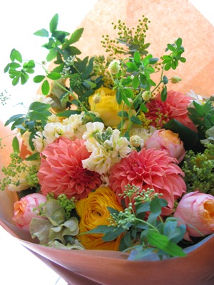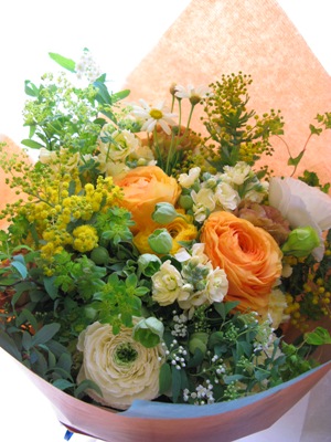 (写真は2枚とも送別用ブーケ。同じ方からのご注文。)