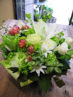 きょうの写真↑は、母の日の贈り物アレンジです。記念すべき