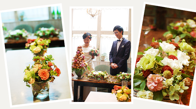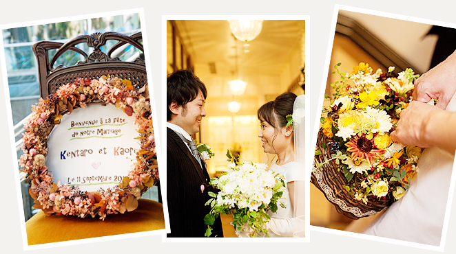 ウェディングブーケ・ブートニア・クラウン、メインテーブル、ゲストテーブル、ウェルカムボード